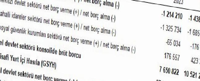 Genel devlet açığı 2024 yılında 1 trilyon 438 milyar 854 milyon TL olarak iddia edildi ve bir evvelki yıl %4,5 olan genel devlet açığının Gayrisafi Yurt İçi Hasıla’ya (GSYH) oranı %3,2’ye düştü. Merkezi devlet ve mahalli yönetimler alt dalları 2024 yılında açık verirken toplumsal güvenlik kurumları alt dalı fazla verdi. Genel devlet konsolide brüt borç stokunun GSYH’ye oranı ise 2024 yılında %23,6’ya düştü.