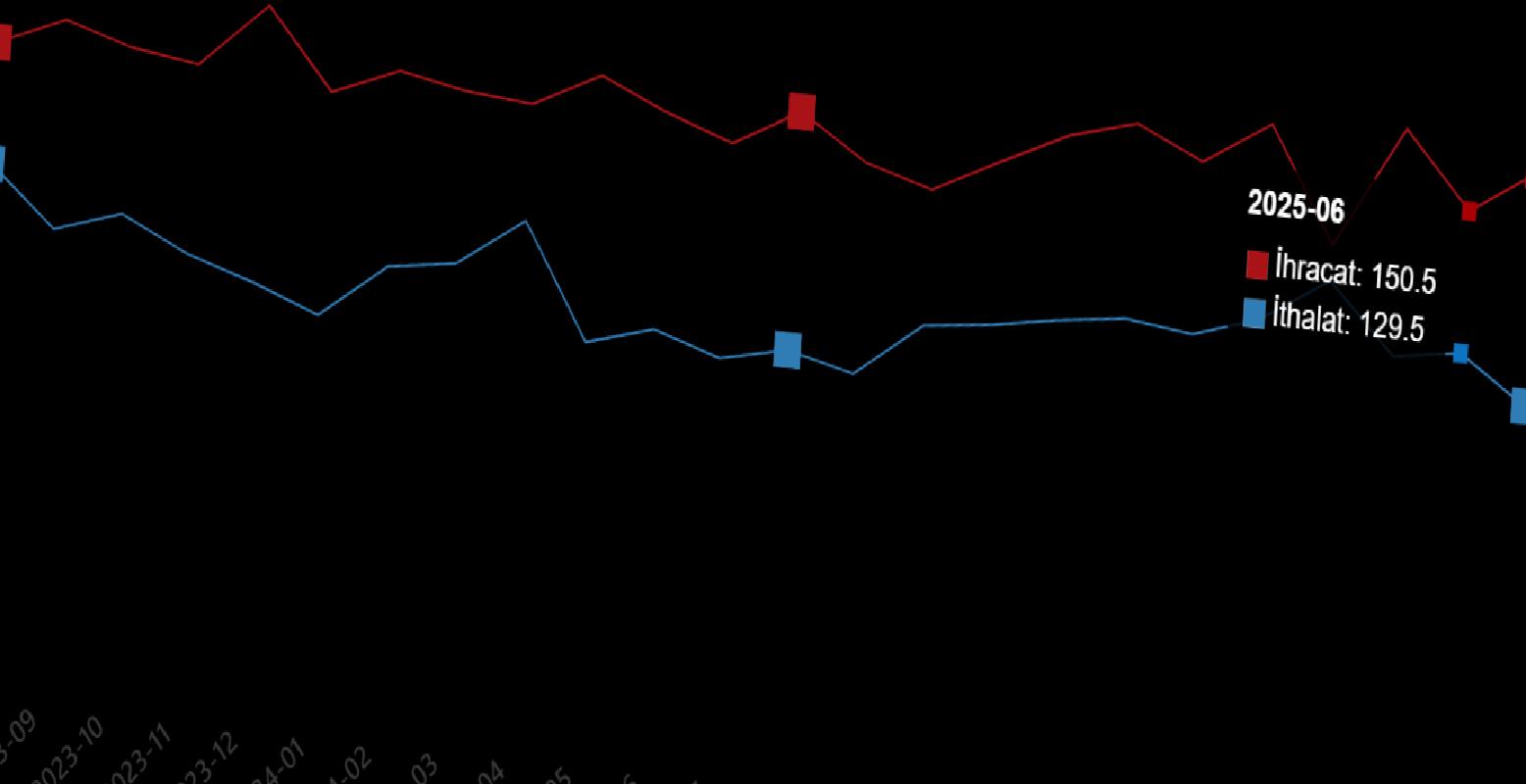Mevsim ve takvim tesirlerinden arındırılmış seriye nazaran ihracat ölçü endeksi; 2025 Temmuz ayında 157,4 iken 2025 Ağustos ayında %2,8 oranında azalarak 152,9 oldu. Takvim tesirlerinden arındırılmış seriye nazaran ise ihracat ölçü endeksi; 2024 yılı Ağustos ayında 147,5 iken 2025 yılı Ağustos ayında %0,9 oranında azalarak 146,1 oldu.