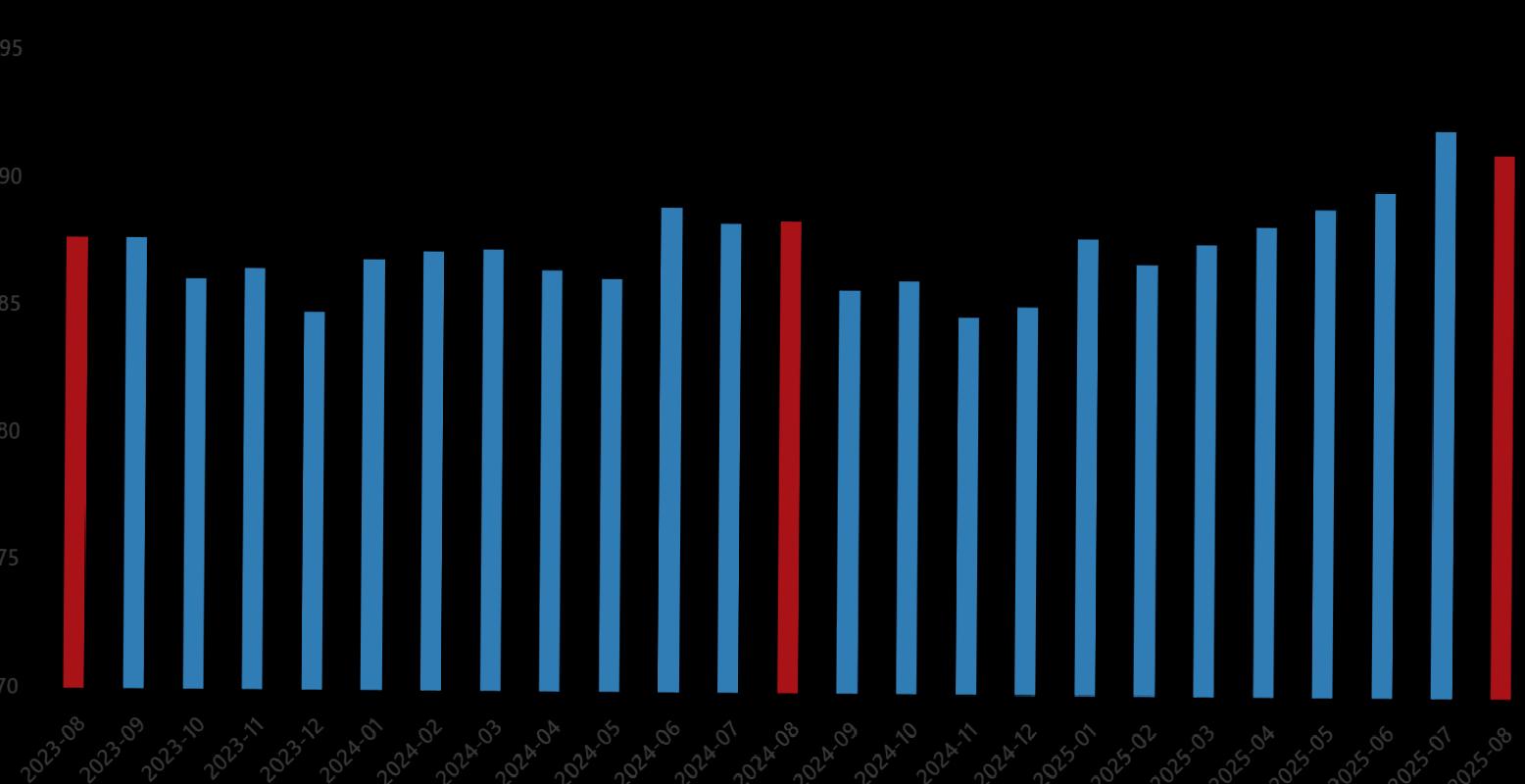 İhracat ünite kıymet endeksinin ithalat ünite bedel endeksine bölünmesiyle hesaplanan ve 2024 yılı Ağustos ayında 88,5 olarak elde edilmiş olan dış ticaret haddi, 2,8 puan artarak, 2025 yılı Ağustos ayında 91,3 oldu.