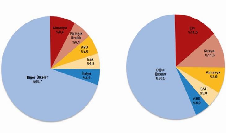 Ocak-Eylül periyodunda ihracatta birinci sırayı Almanya aldı. Almanya’ya yapılan ihracat 16 milyar 552 milyon dolar olurken, bu ülkeyi sırasıyla; 12 milyar 392 milyon dolar ile Birleşik Krallık, 12 milyar 19 milyon dolar ile ABD, 9 milyar 835 milyon dolar ile İtalya ve 8 milyar 674 milyon dolar ile Irak takip etti. Birinci 5 ülkeye yapılan ihracat, toplam ihracatın %29,7’sini oluşturdu.