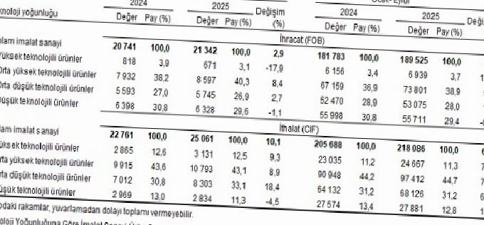 Teknoloji yoğunluğuna nazaran imalat sanayi eserleri dış ticareti, Eylül 2025