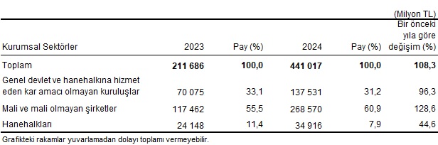 Etraf müdafaa harcamaları 2024 yılında bir evvelki yıla nazaran %108,3 artarak toplam 441 milyar TL olarak gerçekleşti. Etraf muhafaza harcamalarının %60,9’u mali ve mali olmayan şirketler, %31,2’si genel devlet ve hanehalkına hizmet eden kar hedefi olmayan kuruluşlar ve %7,9’u ise hanehalkları tarafından yapıldı.