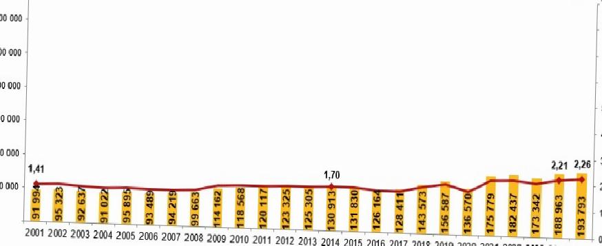 Boşanma sayısı ve kaba boşanma suratı, 2001-2025