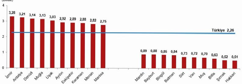 Kaba boşanma suratının en yüksek olduğu vilayet, binde 3,28 ile İzmir oldu