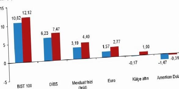 Altı aylık değerlendirmeye nazaran külçe altın; Yİ-ÜFE ile indirgendiğinde %12,64, TÜFE ile indirgendiğinde ise %14,14 oranlarında yatırımcısına en yüksek gerçek getiri sağlayan yatırım aracı olurken; tıpkı devirde DİBS, Yİ-ÜFE ile indirgendiğinde %2,91, TÜFE ile indirgendiğinde ise %1,63 oranlarında yatırımcısına en çok kaybettiren yatırım aracı oldu.