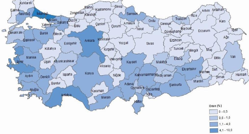 İstanbul’u sırasıyla %7,5 ile Ankara ve %6,5 ile İzmir takip etti.