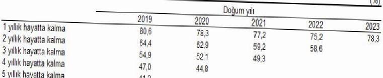 Doğum yıllarına nazaran hayatta kalma göstergeleri (%), 2019-2023