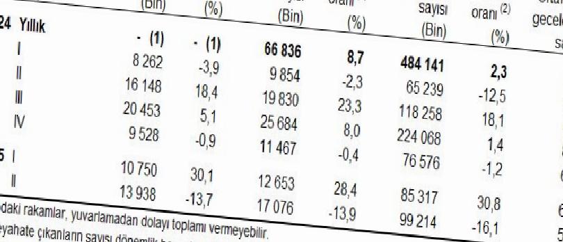 Seyahate çıkan kişi, seyahat ve geceleme sayıları, II. Çeyrek: Nisan-Haziran, 2025