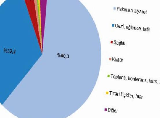 Yakınları ziyaret gayesi ile yapılan seyahatler %60,3 ile birinci sırada yer aldı