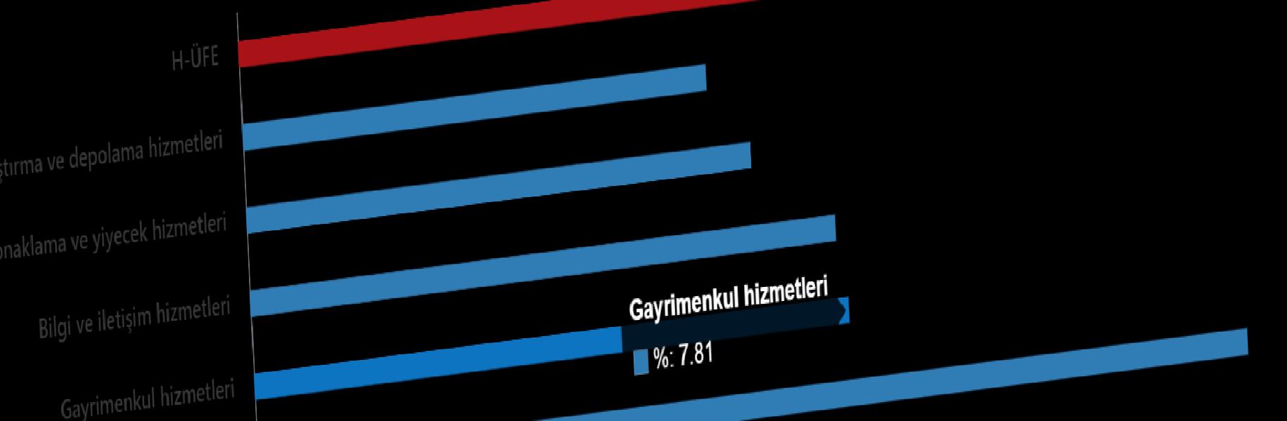 Bir evvelki aya nazaran, ulaştırma ve depolama hizmetlerinde %6,08 artış, konaklama ve yiyecek hizmetlerinde %6,62 artış, bilgi ve bağlantı hizmetlerinde %7,68 artış, gayrimenkul hizmetlerinde %7,81 artış, mesleksel, bilimsel ve teknik hizmetlerde %12,99 artış, idari ve dayanak hizmetlerde %9,29 artış gerçekleşti.