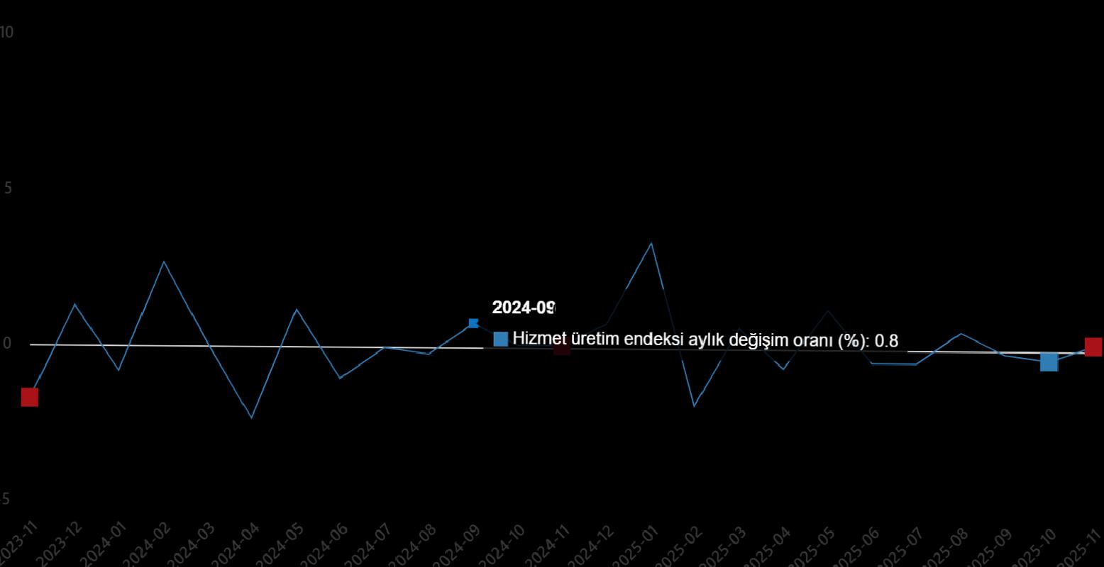 Hizmet üretim endeksi aylık değişim oranı (%), Kasım 2025