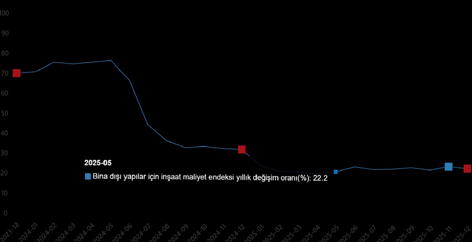 Bina dışı yapılar için inşaat maliyet endeksi yıllık değişim oranı(%), Aralık 2025
