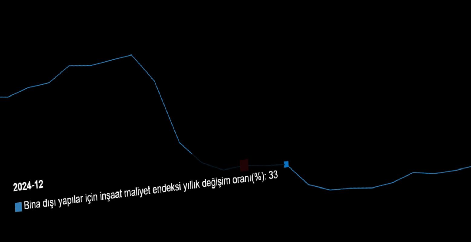 Bina dışı yapılar için inşaat maliyet endeksi, bir evvelki aya nazaran %1,05 arttı, bir evvelki yılın tıpkı ayına nazaran %23,48 arttı. Bir evvelki aya nazaran materyal endeksi %1,20 arttı, personellik endeksi %0,73 arttı. Ayrıyeten bir evvelki yılın birebir ayına nazaran materyal endeksi %19,52 arttı, personellik endeksi %32,46 arttı.