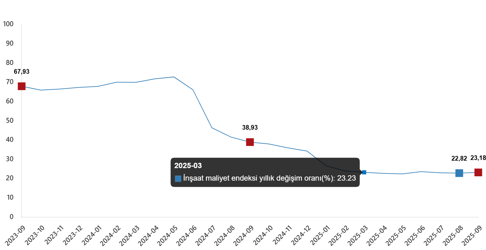 İnşaat maliyet endeksi yıllık değişim oranı(%), Eylül 2025