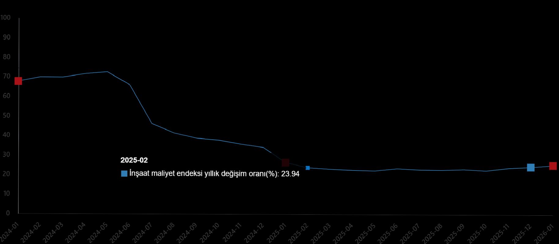 İnşaat maliyet endeksi yıllık değişim oranı(%), Ocak 2026