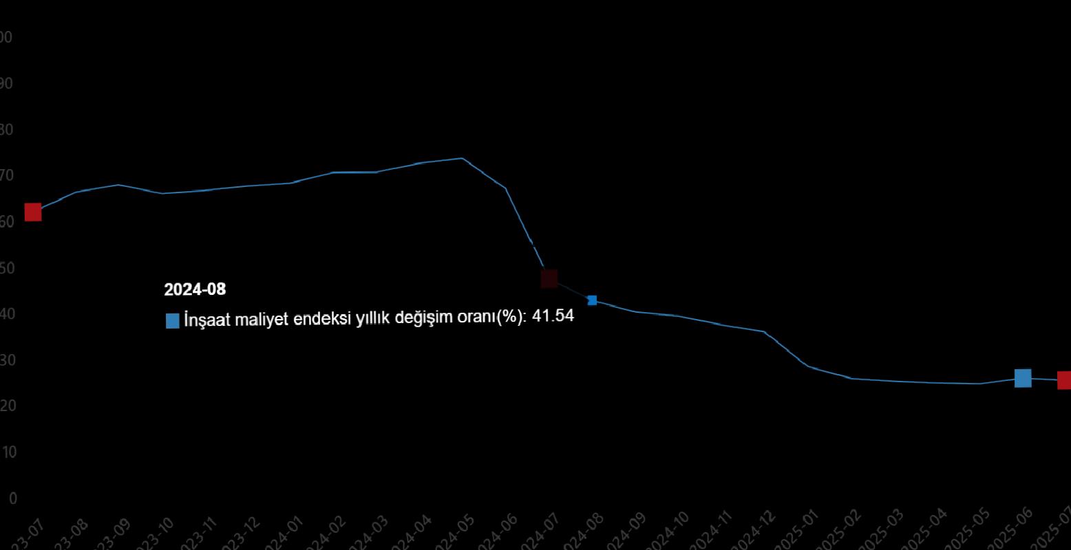 İnşaat maliyet endeksi yıllık değişim oranı(%), Temmuz 2025