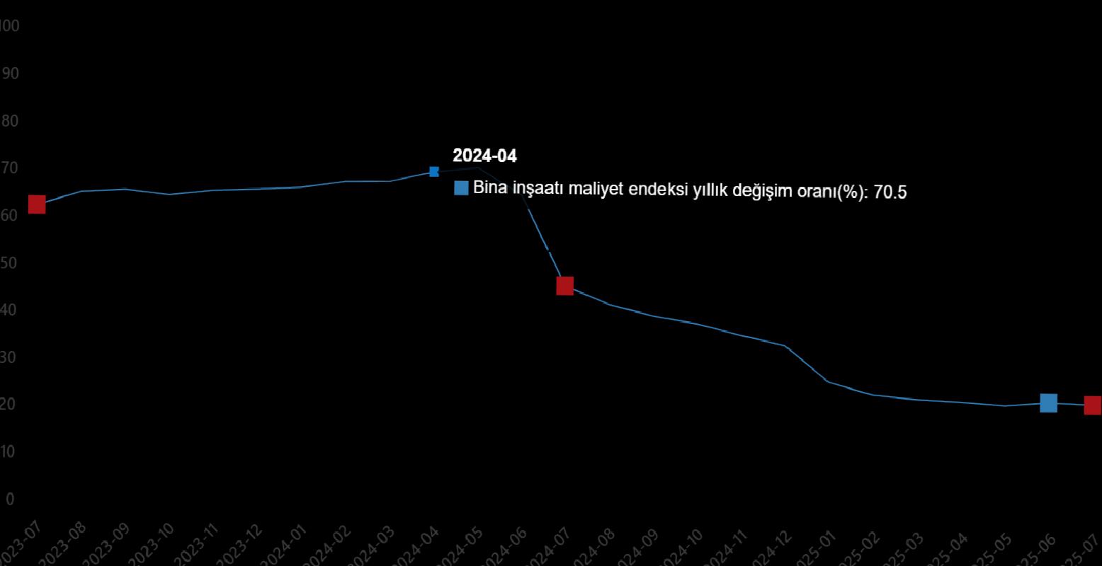 Bina inşaatı maliyet endeksi yıllık değişim oranı(%), Temmuz 2025