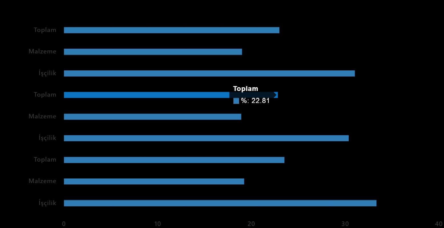 Bina inşaatı maliyet endeksi, bir evvelki aya nazaran %1,21 arttı, bir evvelki yılın birebir ayına nazaran %22,81 arttı. Bir evvelki aya nazaran gereç endeksi %1,55 arttı, personellik endeksi %0,61 arttı. Ayrıyeten bir evvelki yılın birebir ayına nazaran gereç endeksi %18,90 arttı, personellik endeksi %30,35 arttı.