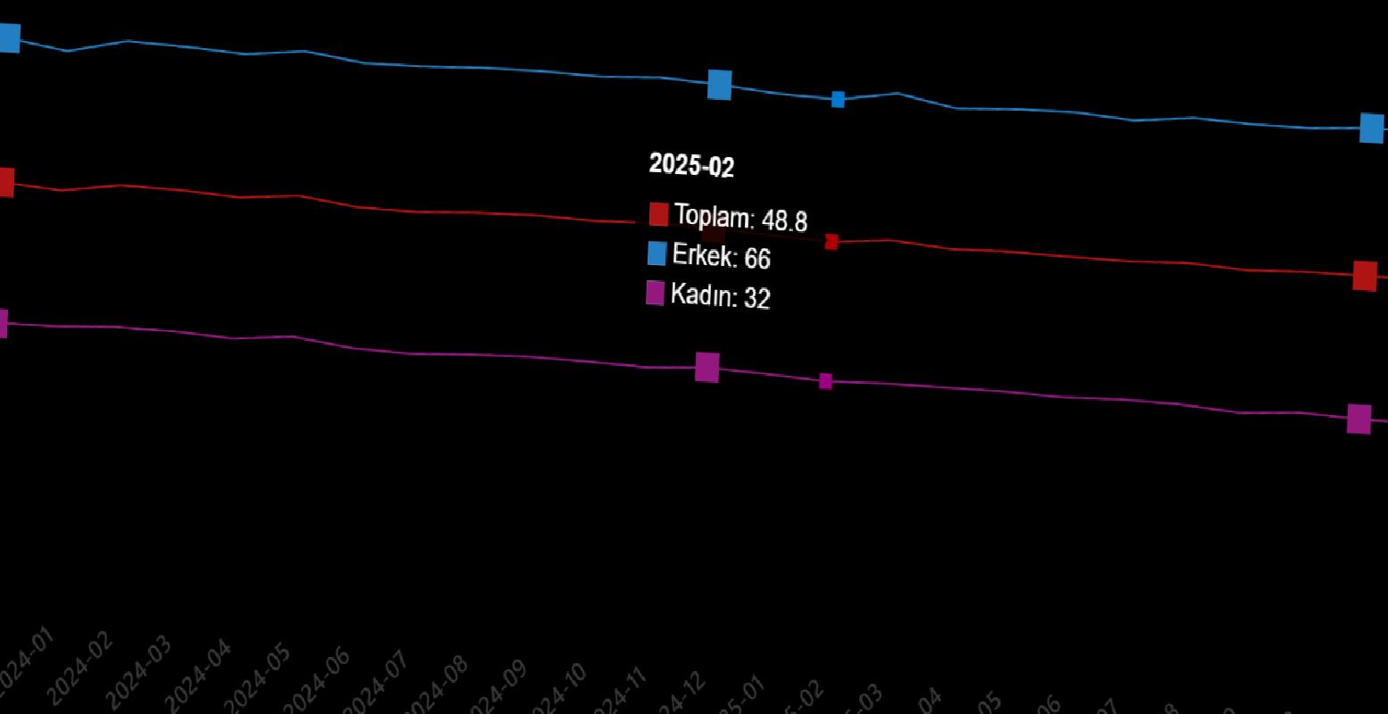 İşgücü, 2025 yılı Aralık ayında bir evvelki aya nazaran 328 bin kişi azalarak 35 milyon 421 bin kişi, işgücüne katılma oranı ise 0,5 puan azalarak %53,2 olarak gerçekleşti. İşgücüne katılma oranı erkeklerde %71,3 iken bayanlarda %35,5 oldu.