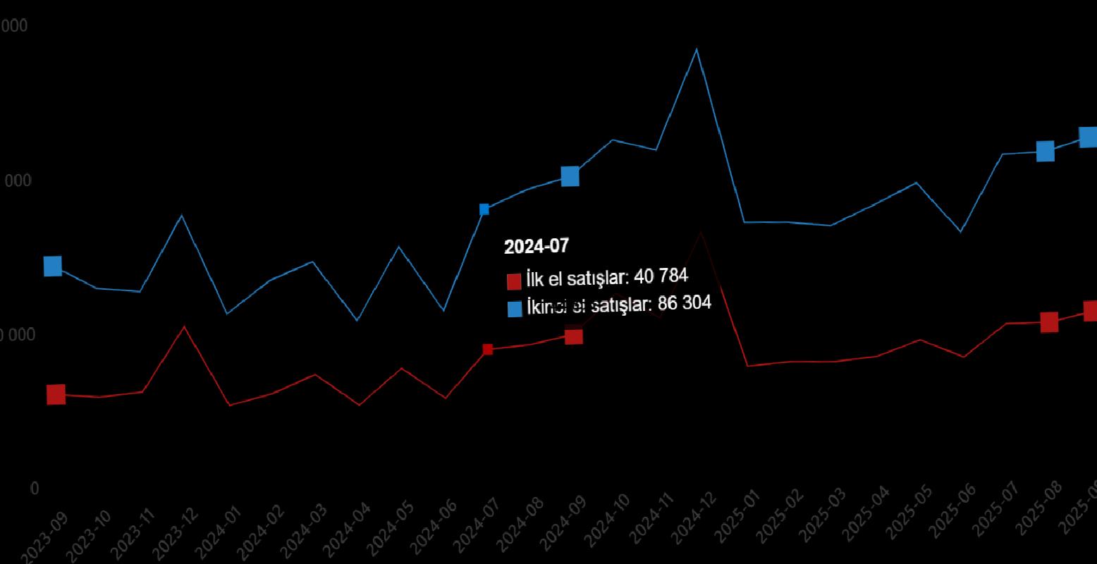 | İkinci el satış | 103 540 | 96 061 | 7,8 | 786 086 | 646 357 | 21,6 |