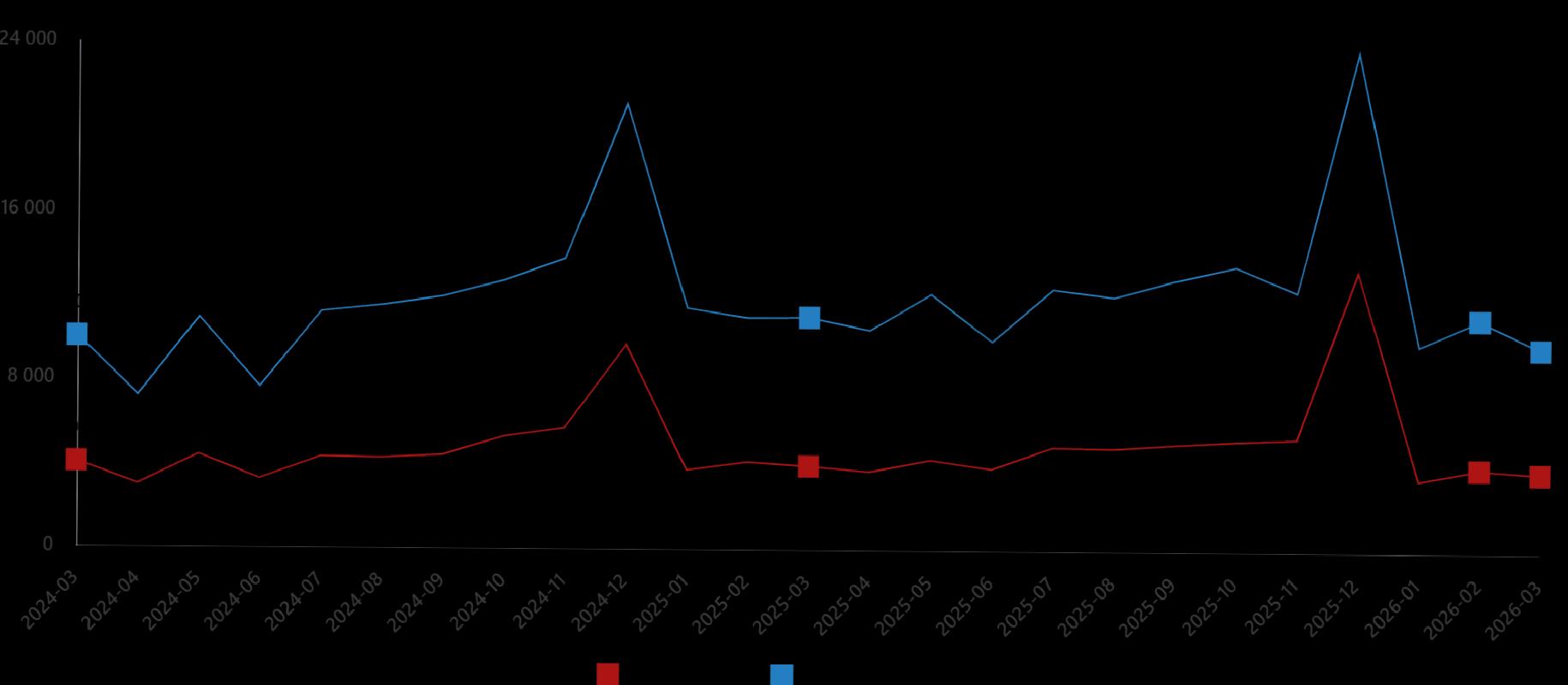Satış durumuna nazaran mevsim ve takvim tesirinden arındırılmış konut satışı, Mart 2026