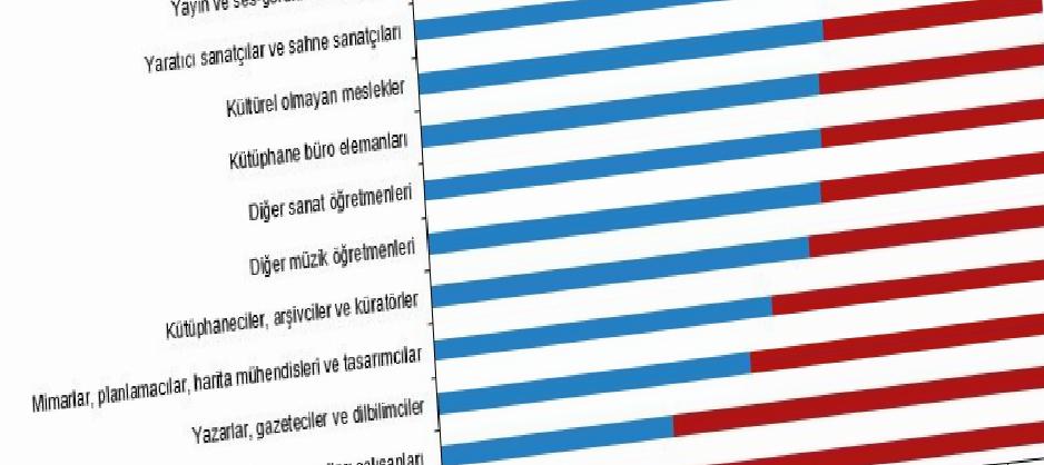Kültürel istihdamın %79,9’unu kültürel meslek alanlarında, %20,1’ini ise kültürel olmayan meslek alanlarında çalışanlar oluşturdu. Kültürel istihdamda olanların %32,6’sını el sanatları çalışanları, %19,2’sini mimarlar, planlamacılar, harita mühendisleri ve dizayncılar, %8,2’sini ise müellifler, gazeteciler ve dilbilimciler oluşturdu. Bayan istihdam oranının en az olduğu kültürel meslek alanı %28,2 ile sanat, kültür ve mutfak ile ilgili yardımcı profesyonel meslek mensupları olurken, bayan istihdam oranının en yüksek olduğu kültürel meslek alanı %77,7 ile öbür lisan öğretmenleri oldu.