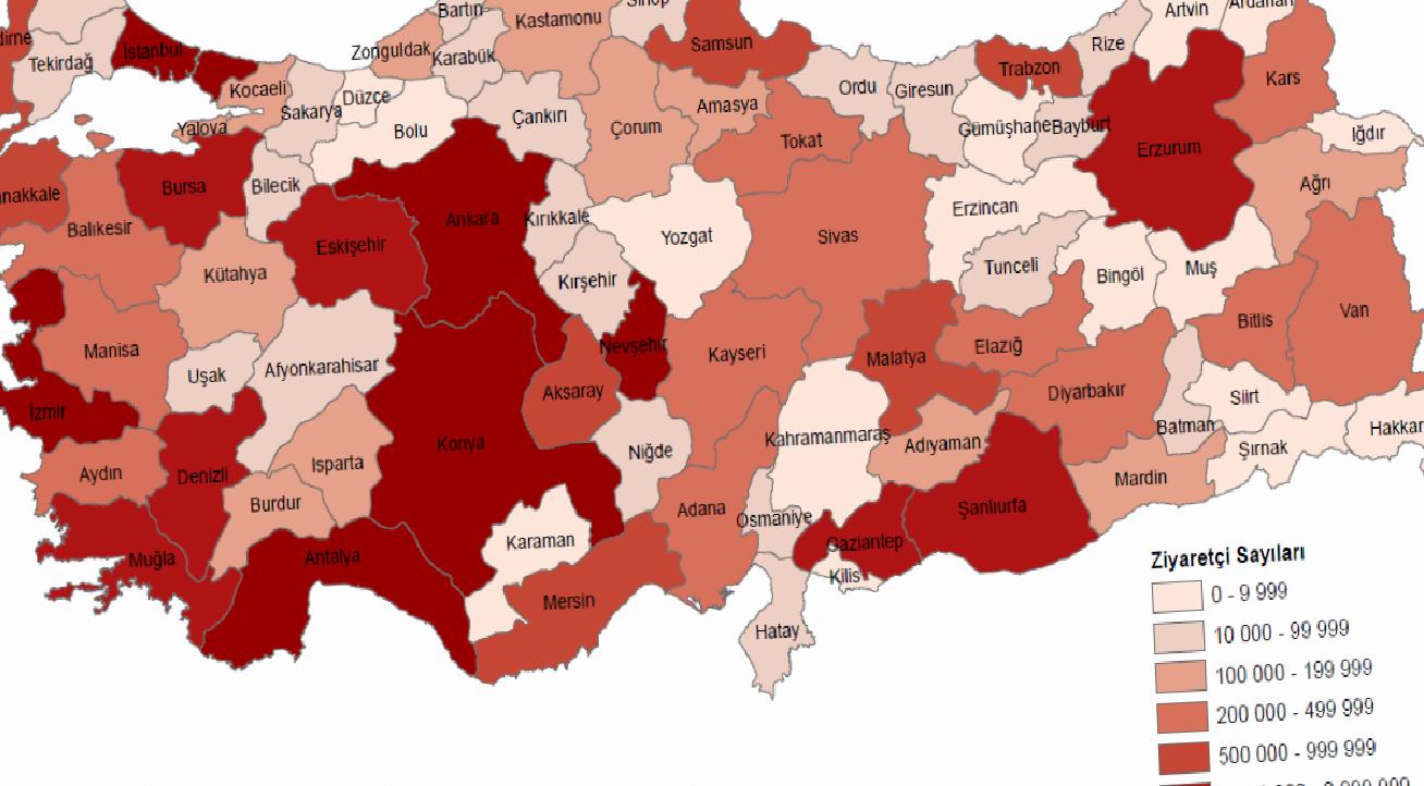 En yüksek müze ziyaretçi sayıları; 18 milyon 182 bin 745 ile İstanbul, 4 milyon 698 bin 641 ile İzmir ve 4 milyon 451 bin 607 ile Nevşehir vilayetlerinde gerçekleşti.