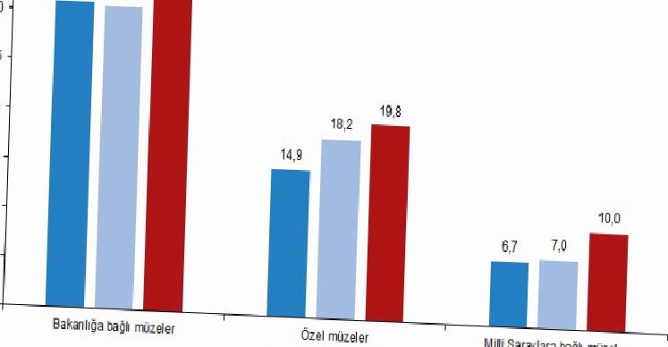 Müze ve ören yeri ziyaretçi sayısı, 2024 yılında %10,6 artarak 61 milyon 687 bin 726 oldu. Ziyaretçilerin %51,7’si Bakanlığa bağlı müze ve ören yerlerini ziyaret etti. Bakanlığa bağlı fiyatlı müze ve ören yerlerini ziyaret edenlerin sayısı 18 milyon 995 bin 286 ve toplam ziyaretçiler içindeki hissesi %30,8 oldu. Özel müze ziyaretçi sayısı %8,4 artarak 19 milyon 774 bin 549 olurken Ulusal Saraylar Başkanlığına bağlı müze ziyaretçi sayısı %42,3 artarak 9 milyon 999 bin 370 oldu.