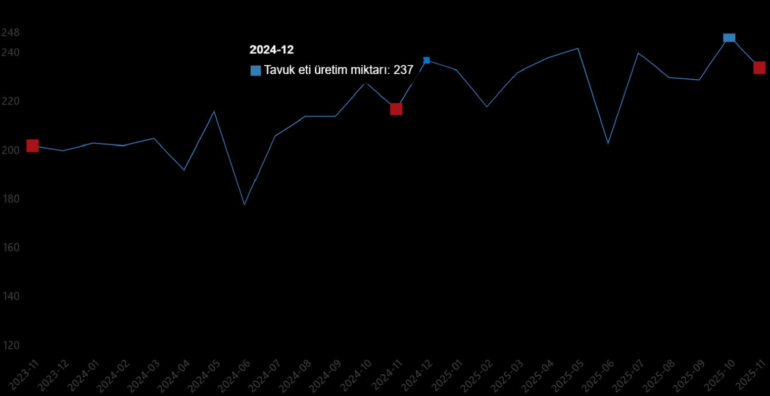Tavuk eti üretim ölçüsü, Kasım 2025