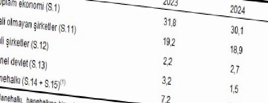 Toplam gayrisafi tasarrufun GSYH’ye oranı 2024 yılında toplam iktisat için %30,1 oldu. Bu oran mali olmayan şirketler için %18,9 hanehalkı için %6,9 mali şirketler için %2,7 ve genel devlet için %1,5 oldu.
