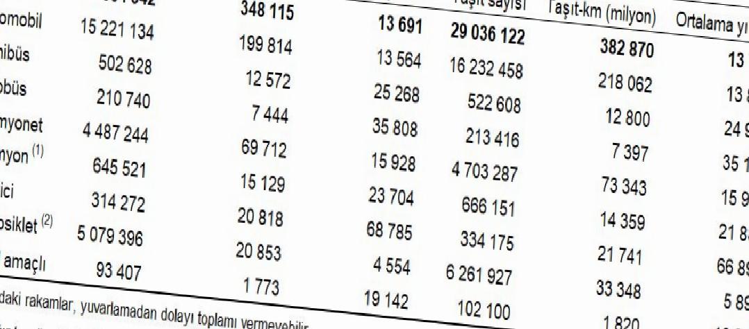 Toplam taşıt-km 382 milyar 870 milyon olarak hesaplandı