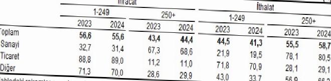 Girişimin ana faaliyeti ve çalışan sayısına nazaran dış ticaret hissesi, 2023, 2024
