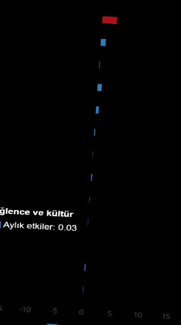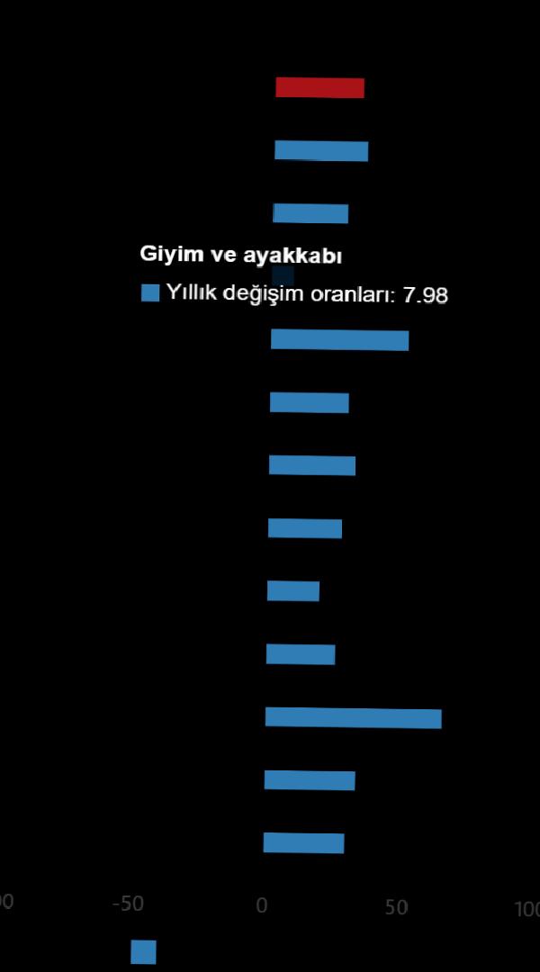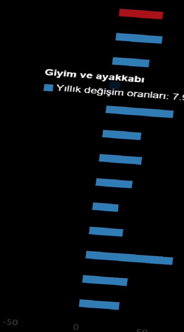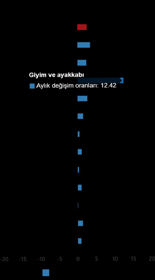 En yüksek yüke sahip 3 ana harcama kümesinin yıllık değişimleri; besin ve alkolsüz içeceklerde %34,87 artış, ulaştırmada %27,33 artış ve konutta %50,96 artış olarak gerçekleşti. İlgili ana kümelerin yıllık değişime olan tesirleri ise besin ve alkolsüz içeceklerde %8,44, ulaştırmada %4,34 ve konutta %7,75 oldu.
