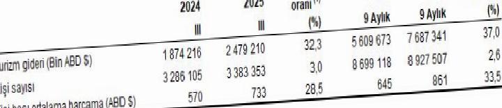 Turizm geliri ve ziyaretçi sayısı, III. Çeyrek: Temmuz-Eylül, 2025
