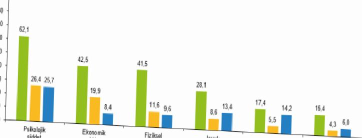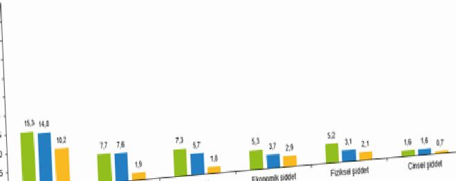 Yaşamının rastgele bir periyodunda bayanların %28,2’si ruhsal, % 18,3’ü ekonomik, % 12,8’i ise fizikî şiddete uğradı.
