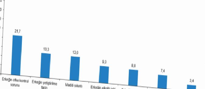 Eşi yahut birlikte olduğu kişinin fizikî ve/veya cinsel şiddetine maruz kalan bayanların belirttiği şiddet nedenleri incelendiğinde, erkeğin öfke denetimi %21,7 ile birinci sırada yer alırken, erkeğin yetiştirilme şekli %13,3 ile ikinci, maddi zahmet ise %13,0 ile üçüncü sırada yer aldı.