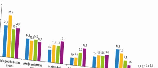 Eşi yahut birlikte olduğu kişinin fizikî ve/veya cinsel şiddetine maruz kalmış bayanların uğradığı şiddet davranışının nedeni olarak erkeğin öfke denetim sorunu olduğunu belirtenlerin %28,3’ünün 25-34 yaş kümesindeki bayanlar olduğu görüldü. Şiddet davranışının nedeni olarak maddi ezayı belirtenlerin %15,1’inin 45-59 yaş kümesindeki bayanlar; erkeğin bayanı kıskanmasını belirtenlerin %14,1’inin 15-24 yaş kümesindeki bayanlar olduğu görüldü.