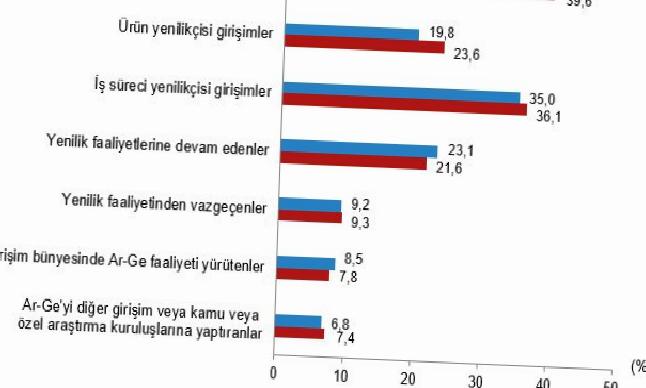 Yenilik faaliyetinde bulunan teşebbüslerin oranı %39,6 oldu