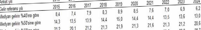 Eşdeğer hanehalkı kullanılabilir fert medyan gelirinin %40’ı dikkate alınarak belirlenen yoksulluk sonuna nazaran, yoksulluk oranı bir evvelki yıla nazaran 0,7 puanlık azalış ile %6,2 olarak gerçekleşti. Medyan gelirin %70’i dikkate alınarak belirlenen yoksulluk hududuna nazaran hesaplanan yoksulluk oranı ise bir evvelki yıla nazaran 0,2 puanlık azalış ile %28,7 oldu.