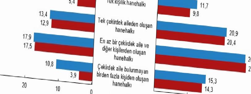 Hanehalkı tipine nazaran muadil hanehalkı kullanılabilir fert medyan gelirinin %50’si dikkate alınarak hesaplanan yoksulluk oranlarına bakıldığında; çekirdek aile bulunmayan birden fazla bireyden oluşan hanehalklarında yoksulluk oranı bir evvelki yıla nazaran 6,9 puan azalarak %3,9, tek kişilik hanehalklarında ise 1,1 puan azalarak %5,4 olmuştur. En az bir çekirdek aile ve öteki şahıslardan oluşan hanehalklarının yoksulluk oranı 0,4 puan azalarak %17,5, tek çekirdek aileden oluşan hanehalklarının yoksulluk oranı ise 0,5 puan azalarak %12,9 oldu.