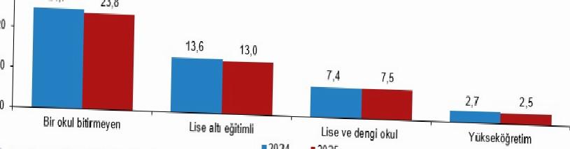 Eğitim durumuna nazaran yoksulluk oranı (%), 2024, 2025