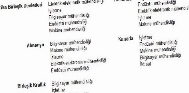 Amerika Birleşik Devletleri’ne göç eden mezunlar içinde en büyük hisseye sahip lisans programı elektrik-elektronik mühendisliği olurken, Almanya, Birleşik Krallık ve Hollanda’yı en fazla tercih eden mezunlar bilgisayar mühendisliği kısmından oldu. Kanada’ya göç etmeyi tercih eden mezunlar ortasında en fazla hisseye sahip olan lisans programı işletme oldu.