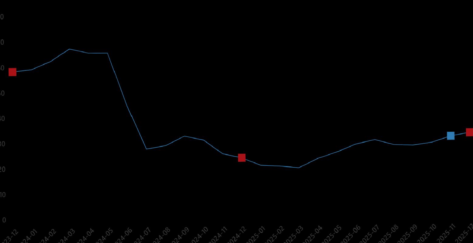 YD-ÜFE yıllık değişim oranları (%), Aralık 2025