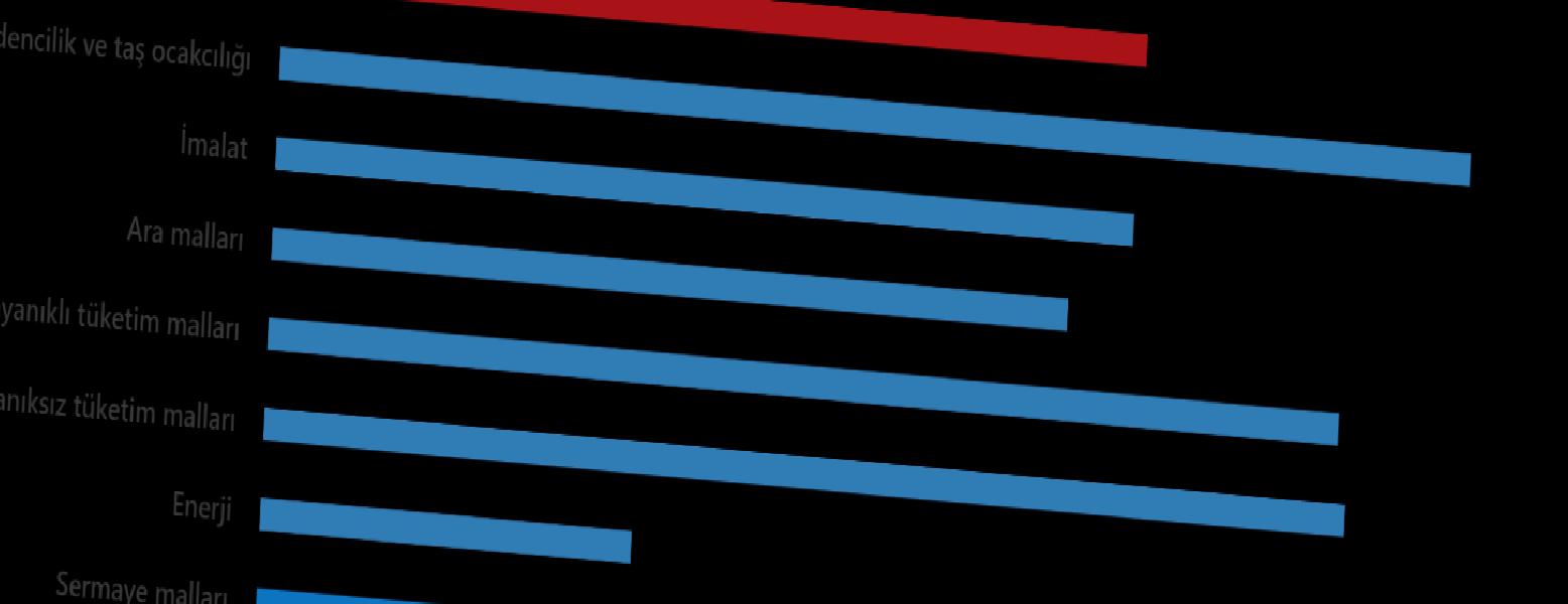 Ana sanayi kümelerinin yıllık değişimleri; orta mallarında %29,91 artış, güçlü tüketim mallarında %40,24 artış, dayanıksız tüketim mallarında %40,63 artış, güçte %13,93 artış, sermaye mallarında %31,02 artış olarak gerçekleşti.