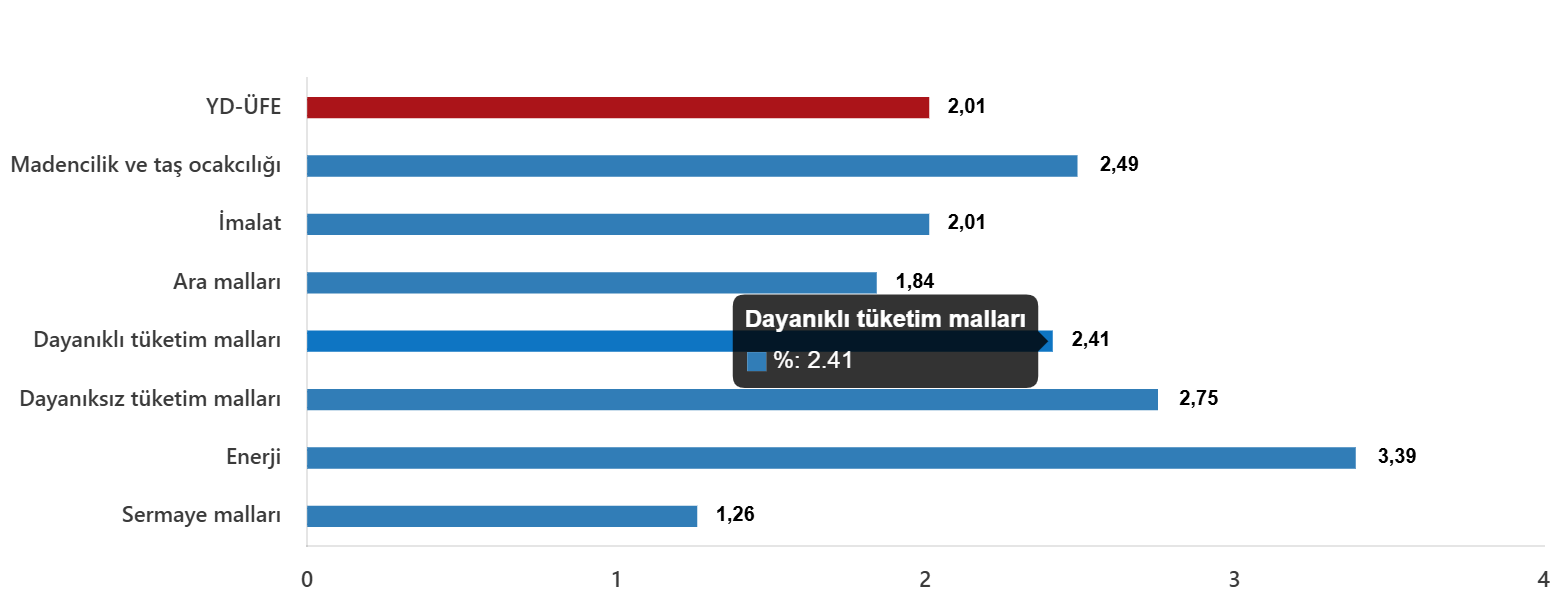 YD-ÜFE imalat eserlerinde aylık %2,01 arttı