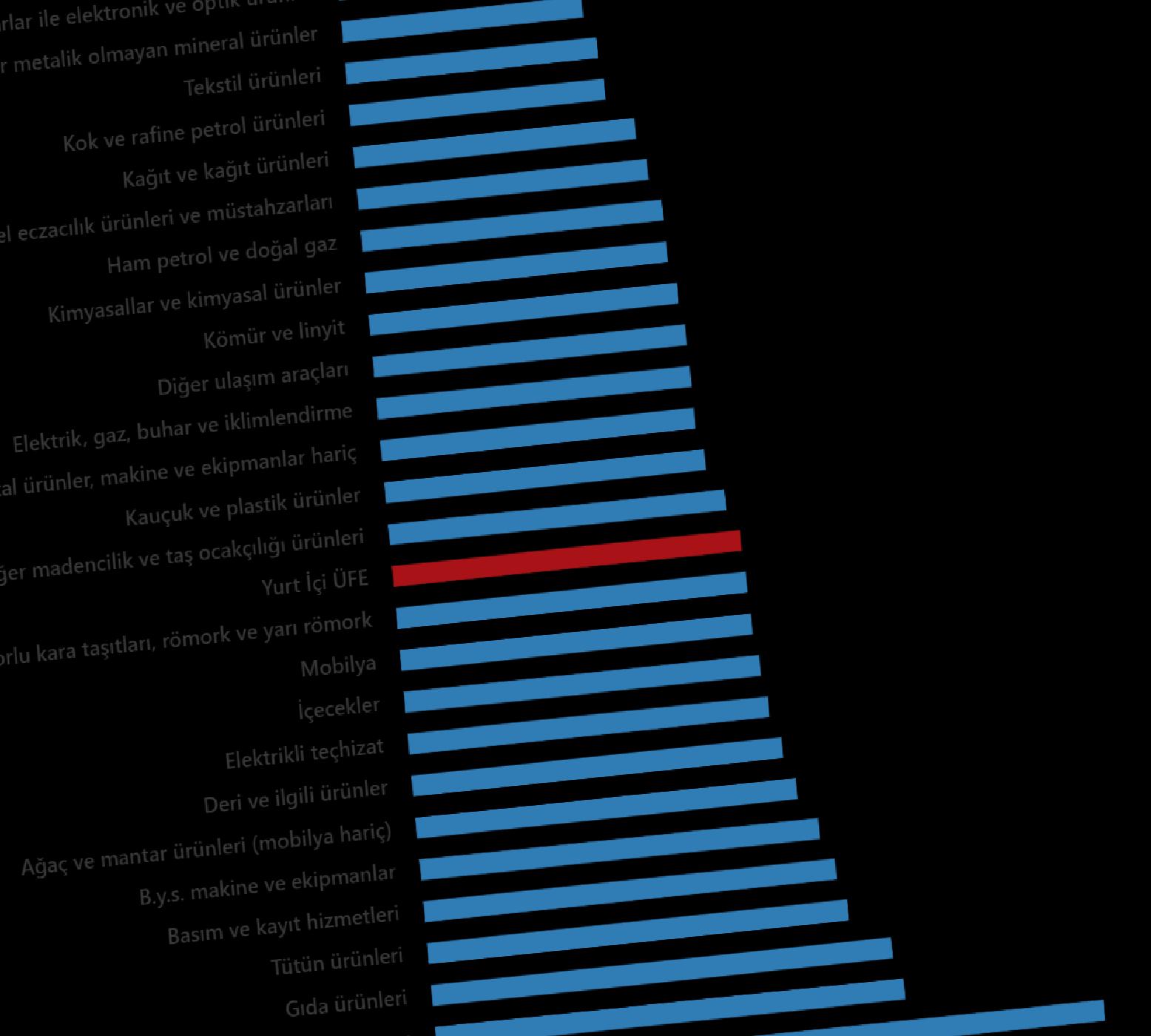 Ana sanayi kümelerinin yıllık değişimleri; orta mallarında %22,33 artış, güçlü tüketim mallarında %33,07 artış, dayanıksız tüketim mallarında %33,91 artış, güçte %25,05 artış ve sermaye mallarında %27,27 artış olarak gerçekleşti.