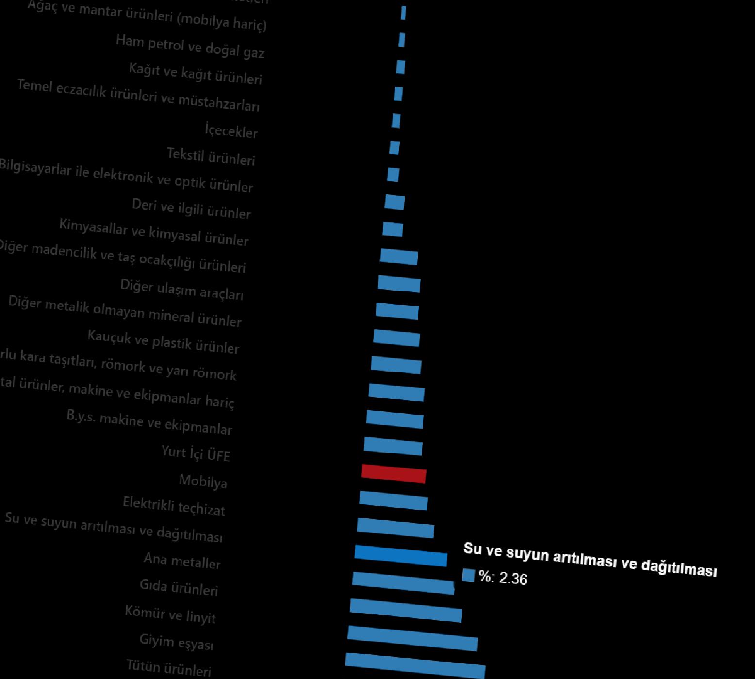 Sanayinin dört dalının yıllık değişimleri; madencilik ve taş ocakçılığında %31,79 artış, imalatta %26,91 artış, elektrik, gaz üretimi ve dağıtımında %24,31 artış ve su temininde %56,26 artış olarak gerçekleşti.