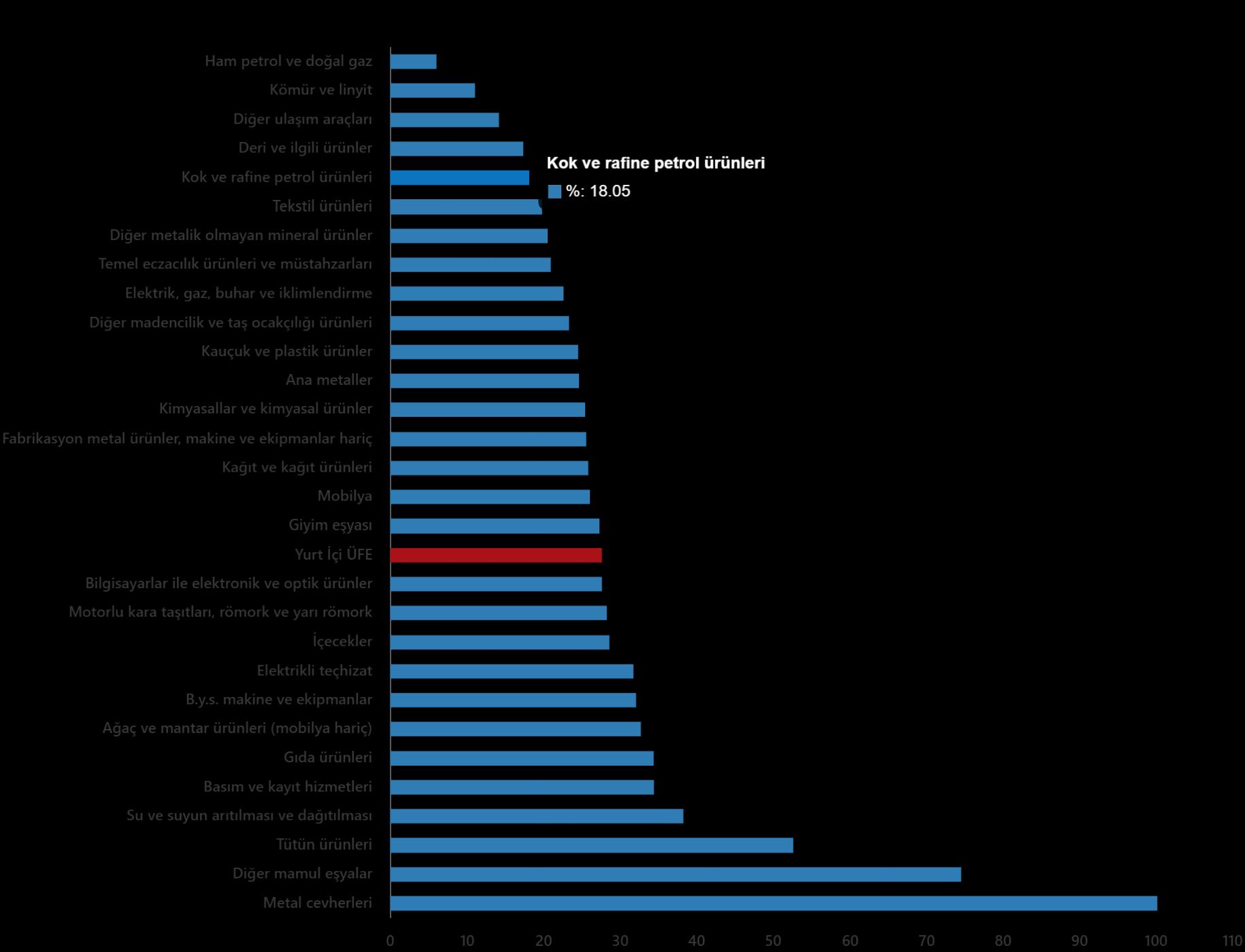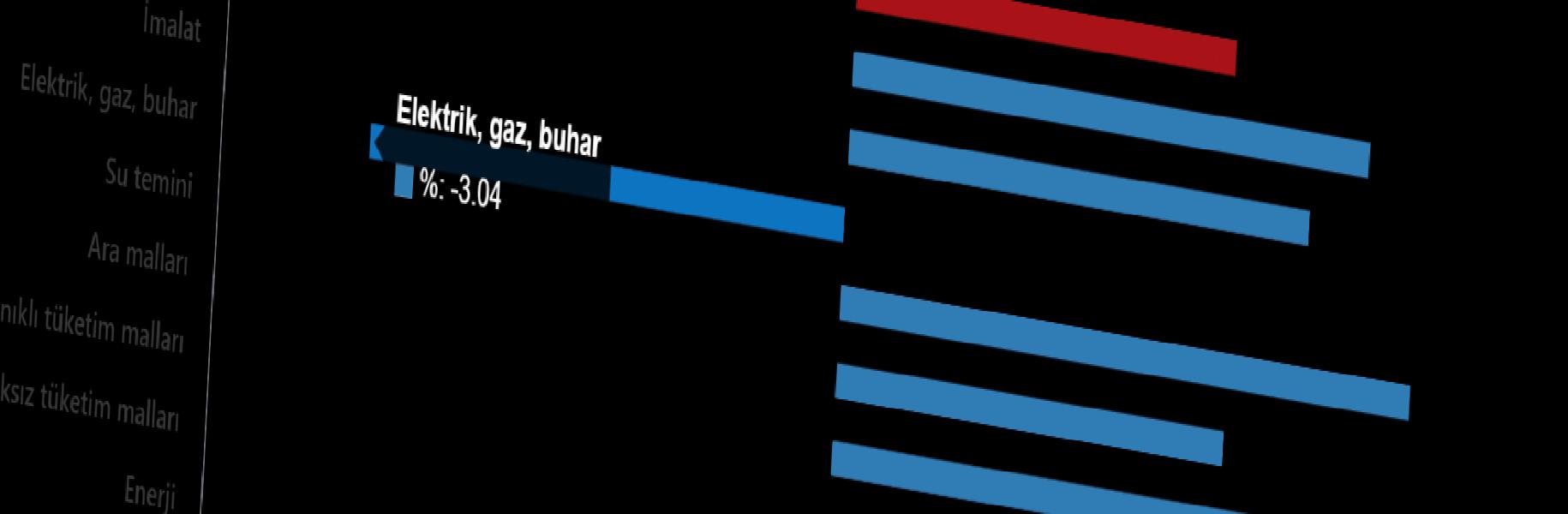 Sanayinin dört dalının yıllık değişimleri; madencilik ve taş ocakçılığında %31,88 artış, imalatta %27,98 artış, elektrik, gaz üretimi ve dağıtımında %22,53 artış ve su temininde %38,22 artış olarak gerçekleşti.